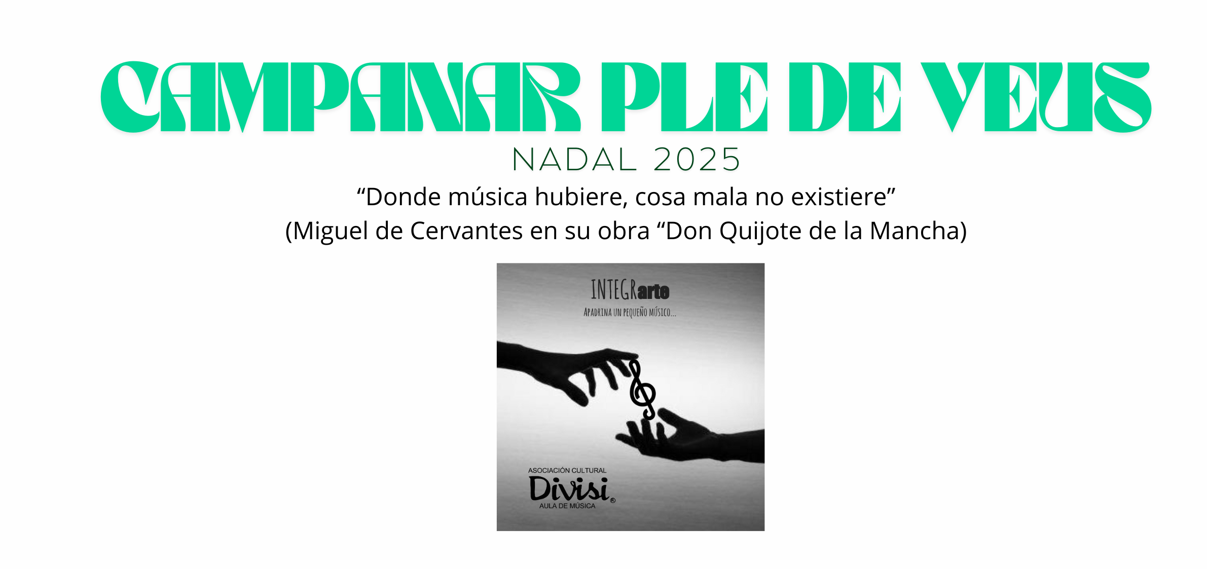 De nuevo ponemos en marcha nuestra campaña solidaria CAMPANAR PLE DE VEUS DIVISI a beneficio del proyecto INTEGRarte del que se benefician niños y niñas del barrio, en riesgo de exclusión social. Con INTEGRarte les acercamos la educación musical y contribuimos a su desarrollo sano, personal y equilibrado.